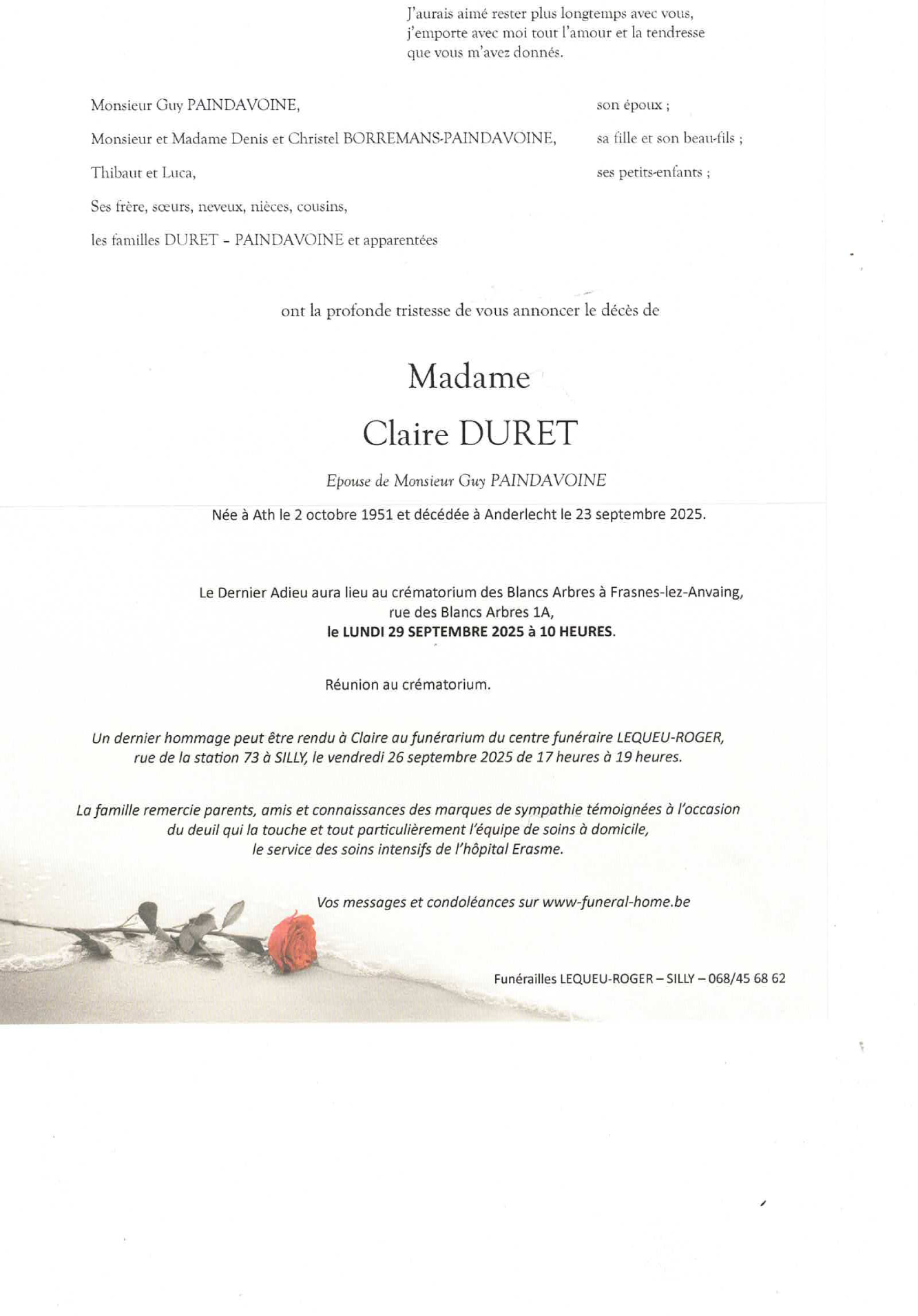 Décédée à Anderlecht (1070) le mardi 23 septembre 2025 à l'âge de 73 ans