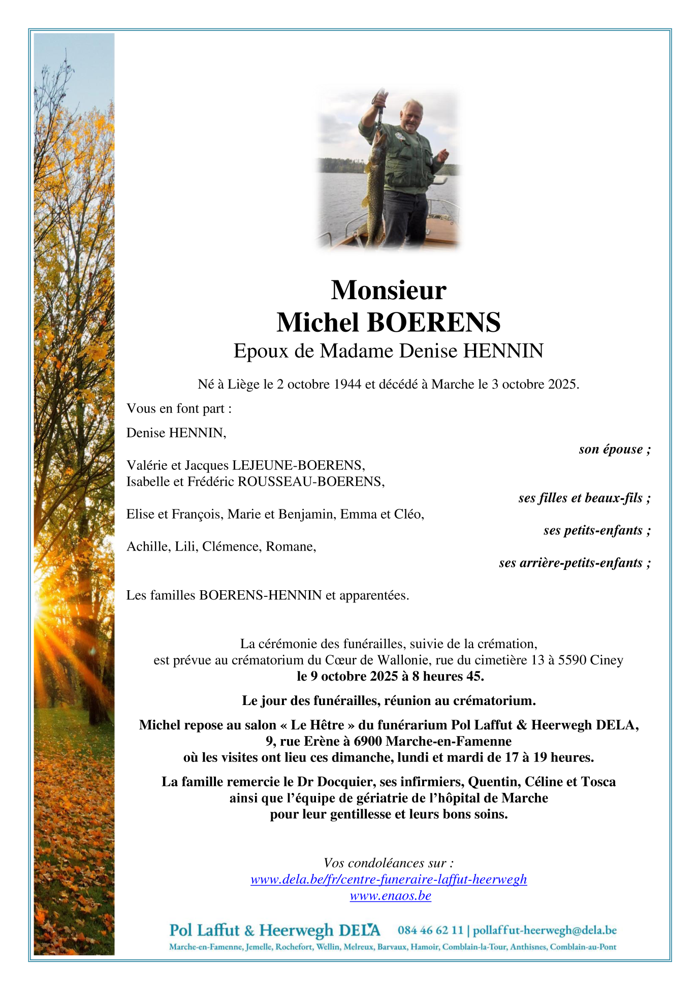 Fallecido en Marche-en-Famenne (6900) el viernes, 3 de octubre de 2025 a la edad de 81 años