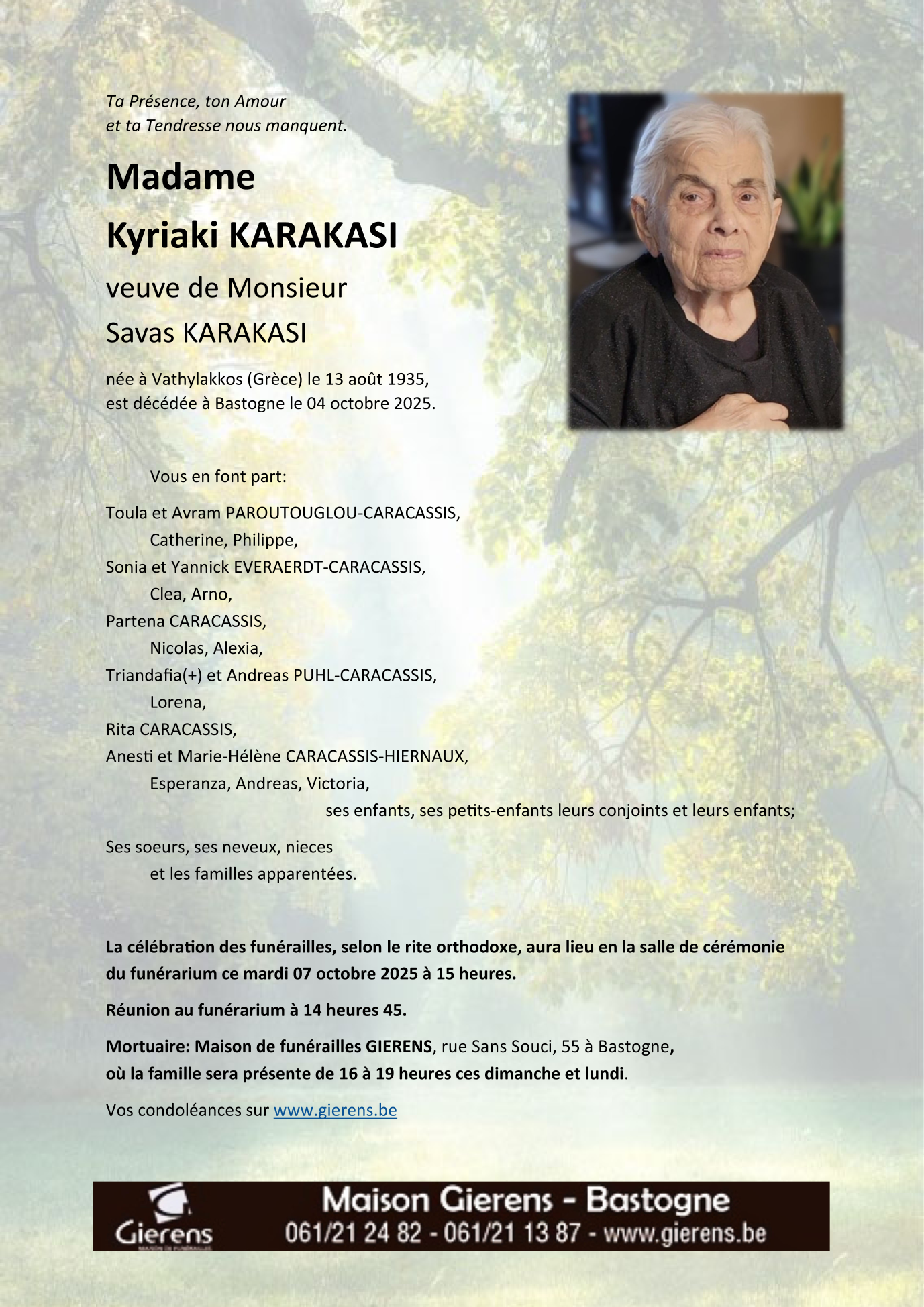 Décédée à Bastogne (6600) le samedi 4 octobre 2025 à l'âge de 90 ans