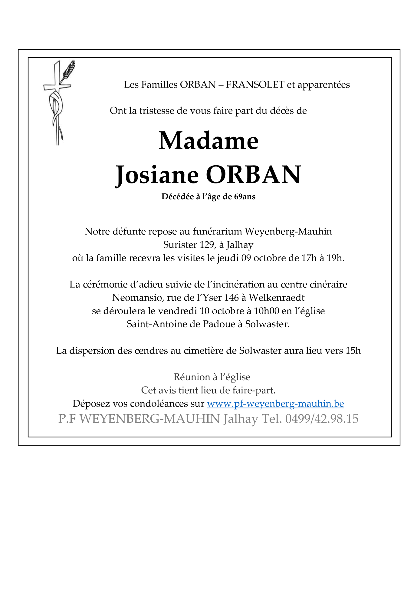 Décédée à Verviers (4800) le lundi 6 octobre 2025 à l'âge de 69 ans