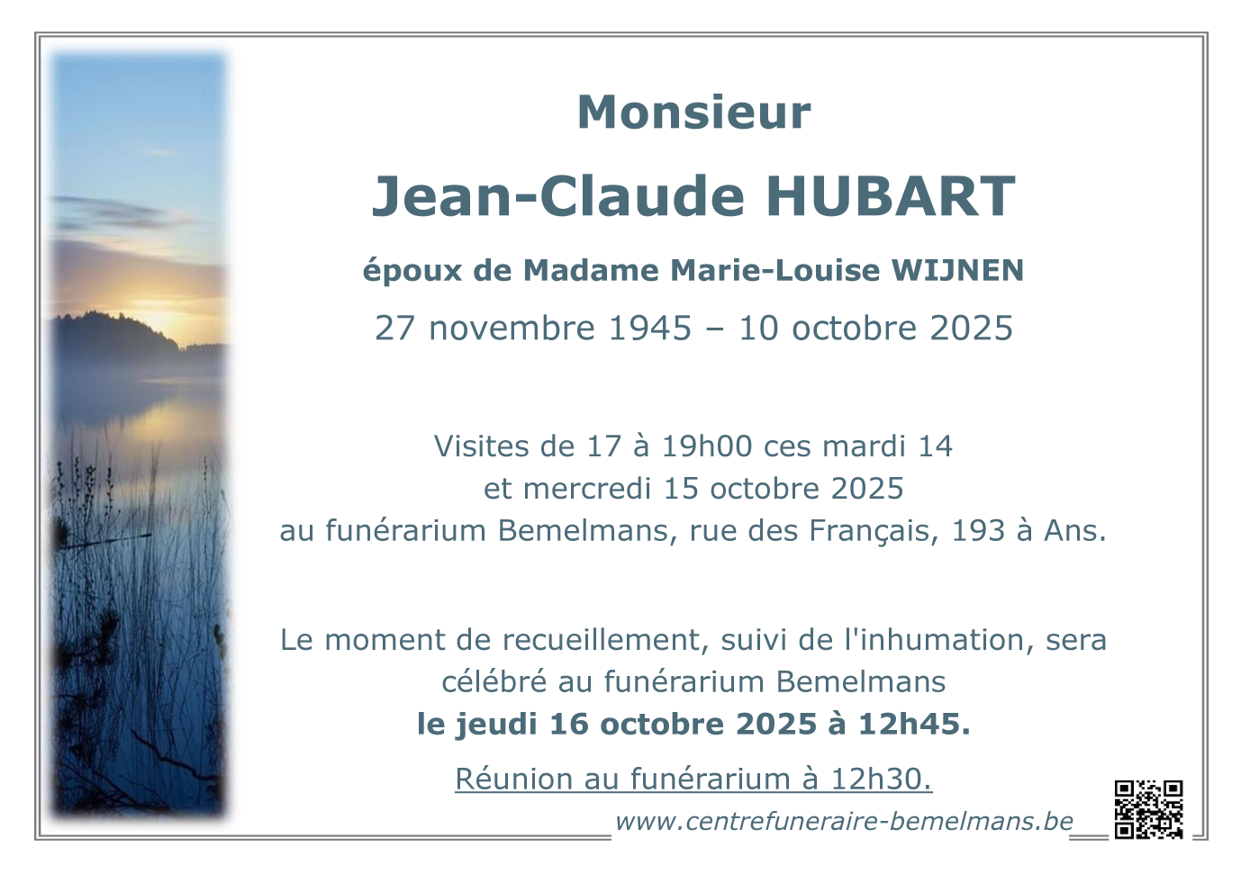 Décédé à Liège (4000) le vendredi 10 octobre 2025 à l'âge de 79 ans