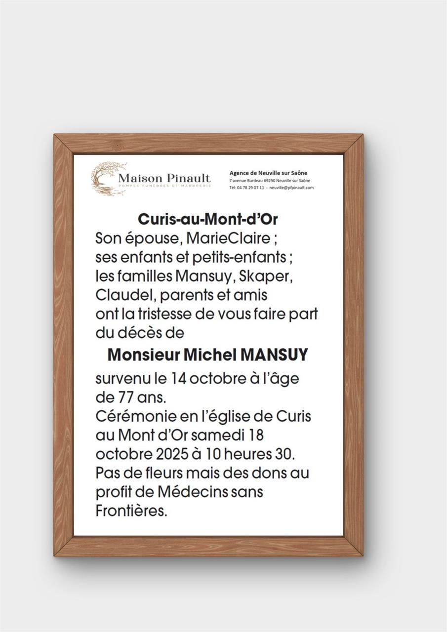 Décédé à Lyon (69003, France) le mardi 14 octobre 2025 à l'âge de 77 ans