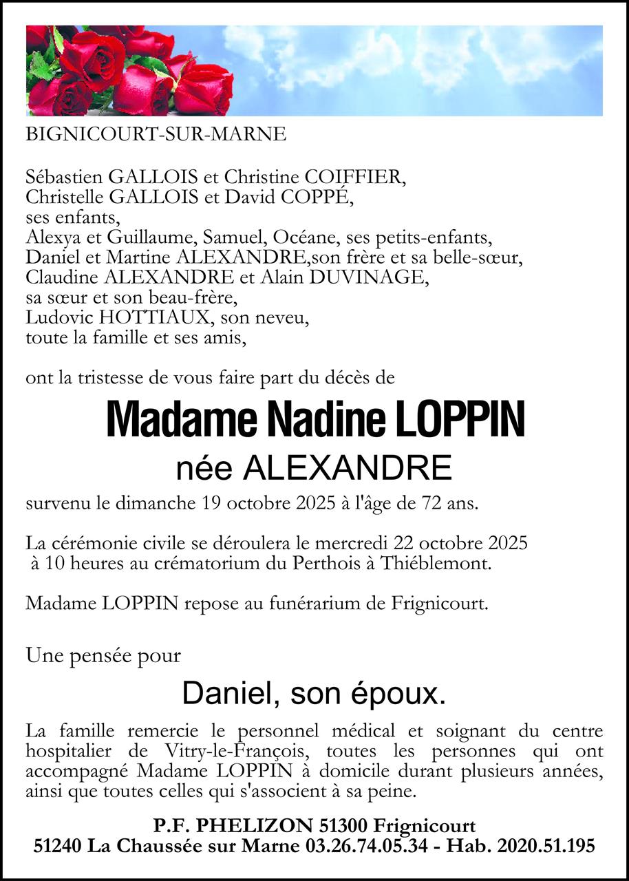 Décédée à Vitry-le-François (51300, France) le dimanche 19 octobre 2025 à l'âge de 72 ans