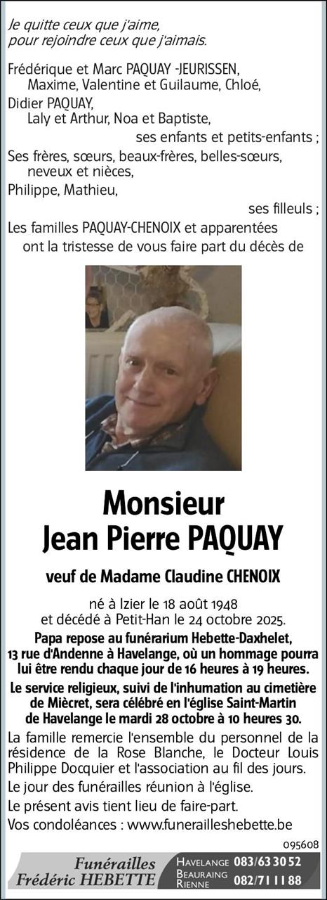 Décédé à Petit-Han (6940) le vendredi 24 octobre 2025 à l'âge de 77 ans