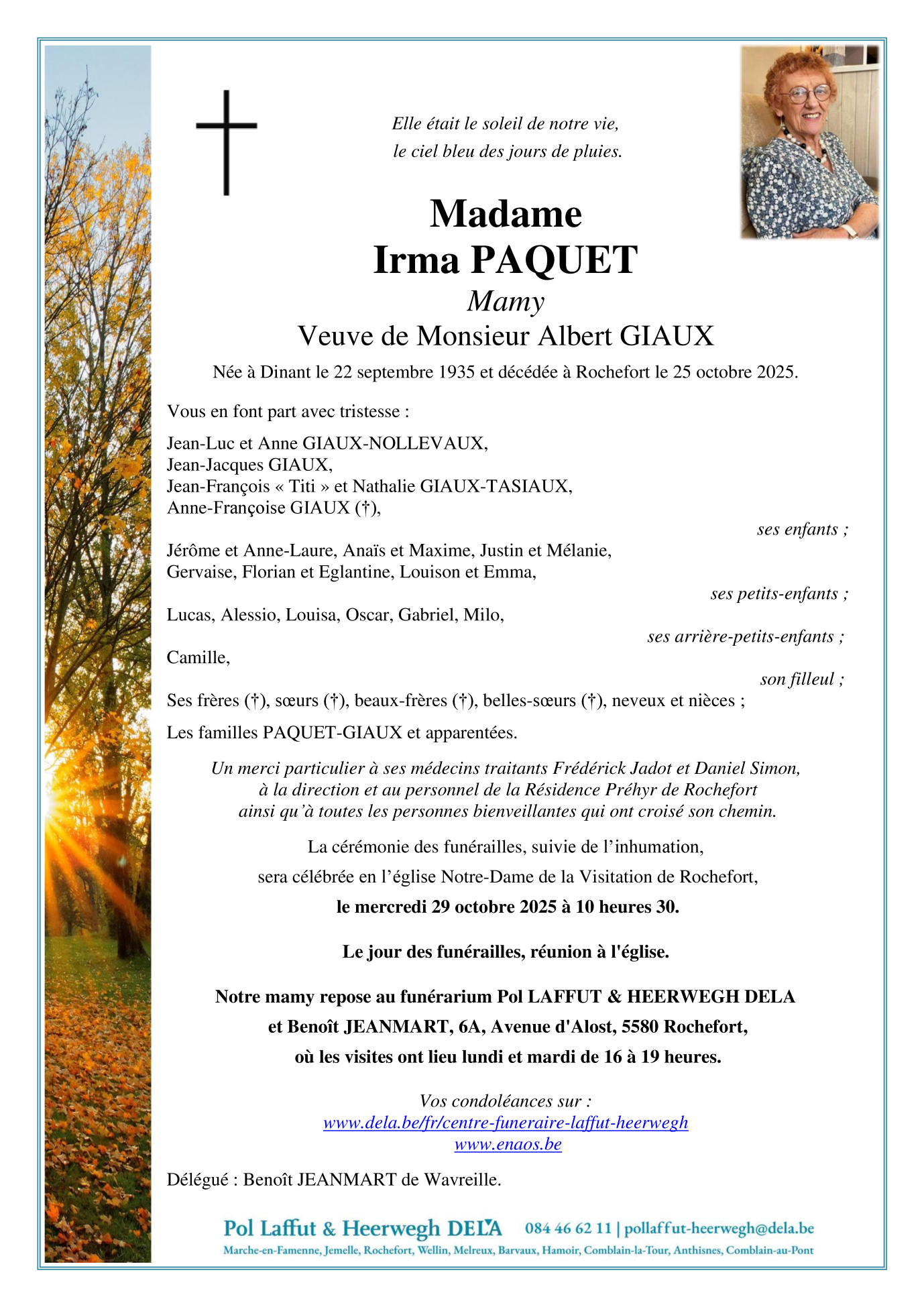 Décédée à Rochefort (5580) le samedi 25 octobre 2025 à l'âge de 90 ans