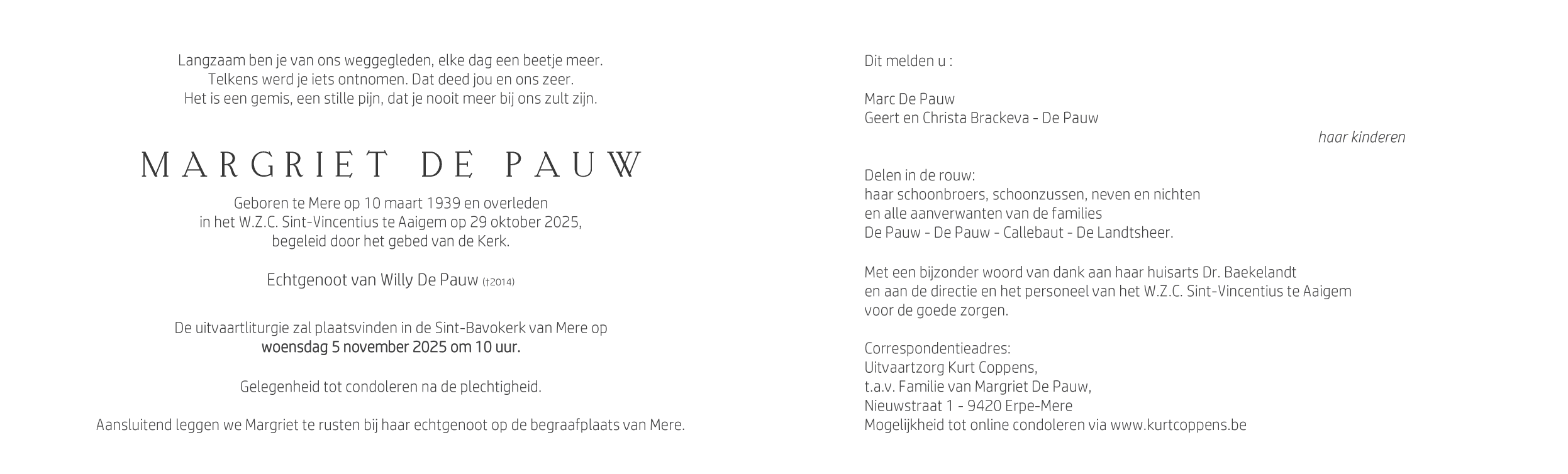Décédée à Aaigem (9420) le mardi 28 octobre 2025 à l'âge de 86 ans
