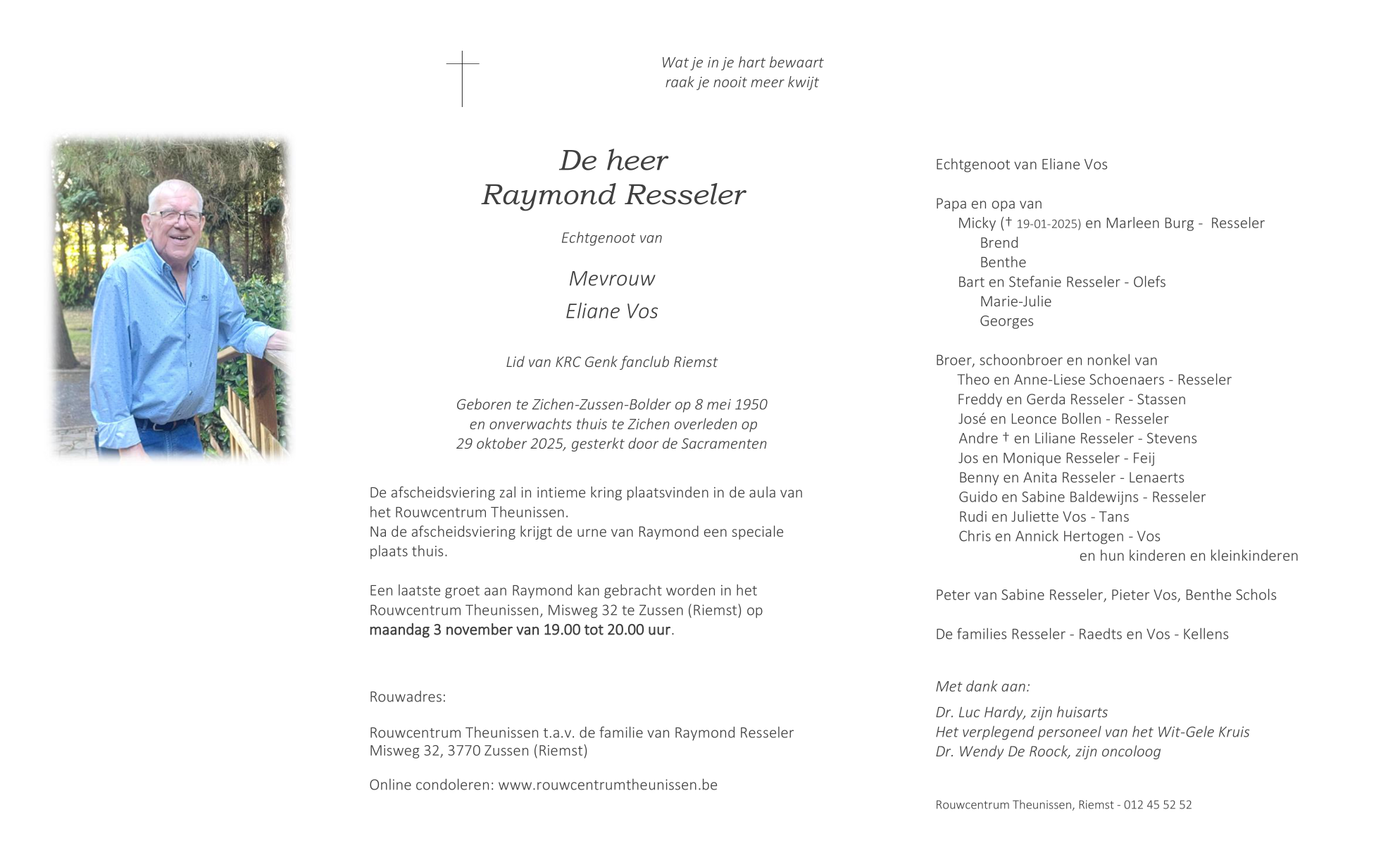Décédé à Zichen-Zussen-Bolder (3770) le mercredi 29 octobre 2025 à l'âge de 75 ans