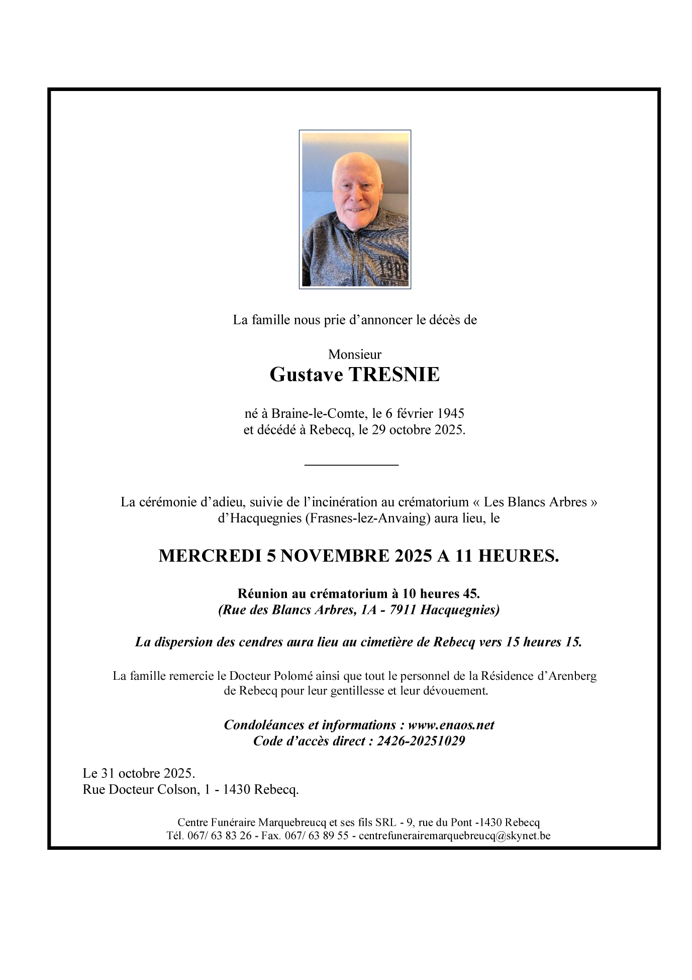 Décédé à Rebecq (1430) le mercredi 29 octobre 2025 à l'âge de 80 ans