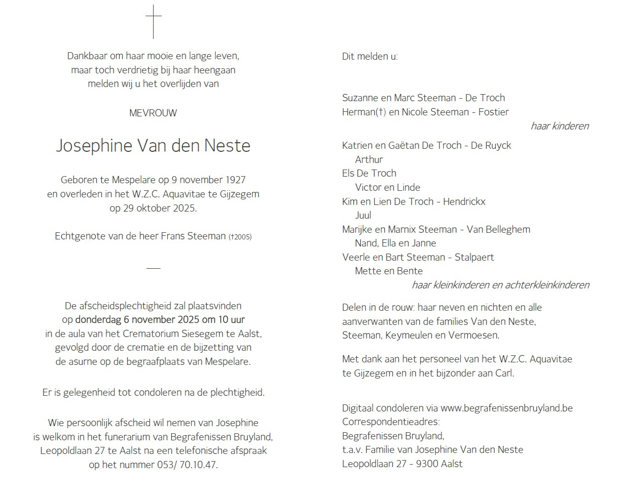 Veuve de de heer Frans Steeman