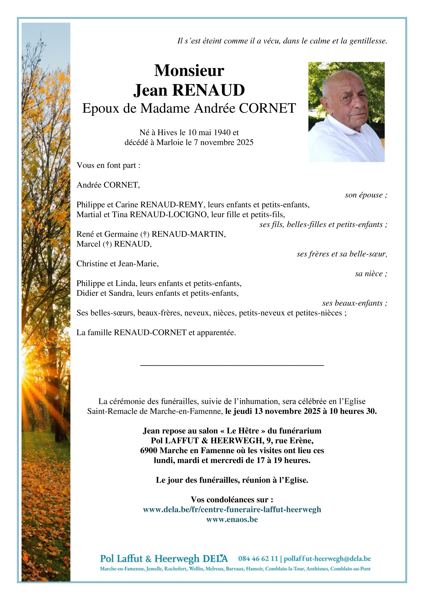 Décédé à Marloie (6900) le vendredi 7 novembre 2025 à l'âge de 85 ans