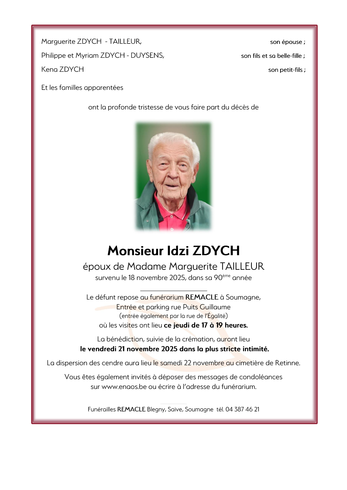 Décédé à Liège (4000) le mardi 18 novembre 2025 à l'âge de 89 ans
