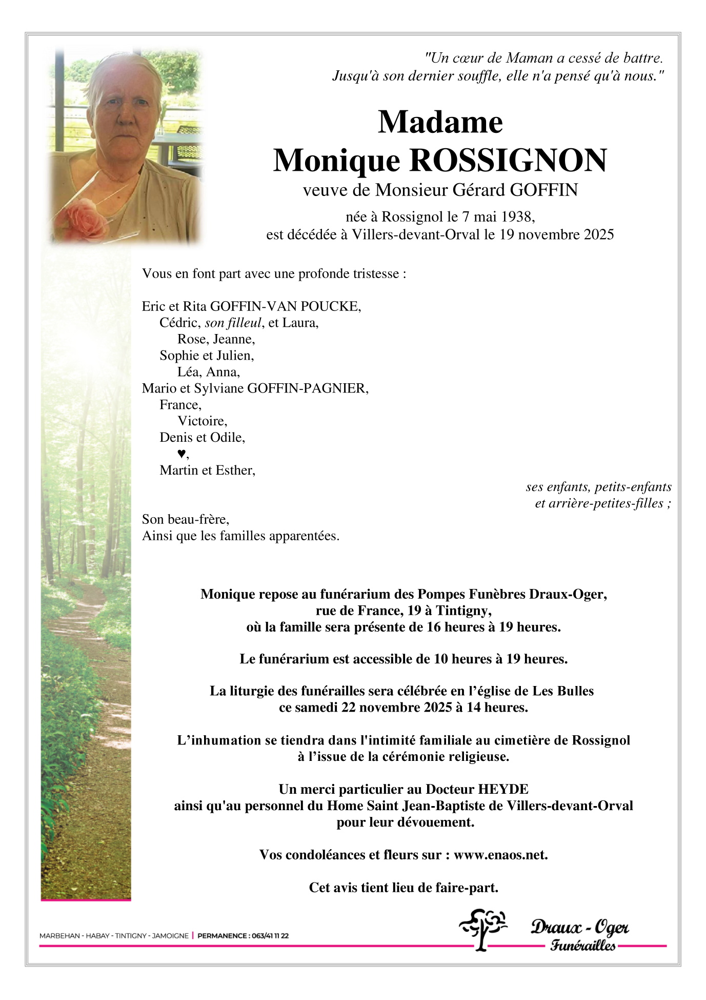 Overleden te Villers-Devant-Orval (6823) op woensdag 19 november 2025 op 87-jarige leeftijd