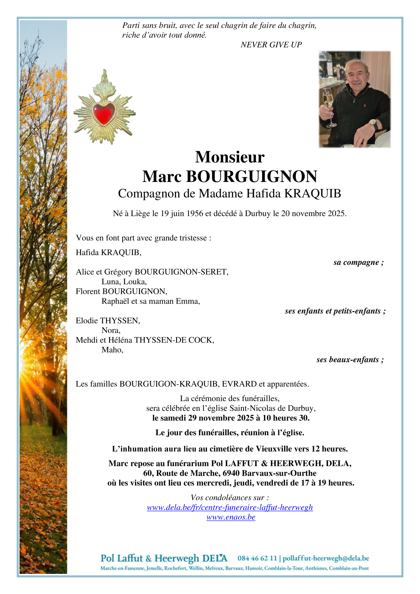 Décédé à Durbuy (6940) le jeudi 20 novembre 2025 à l'âge de 69 ans