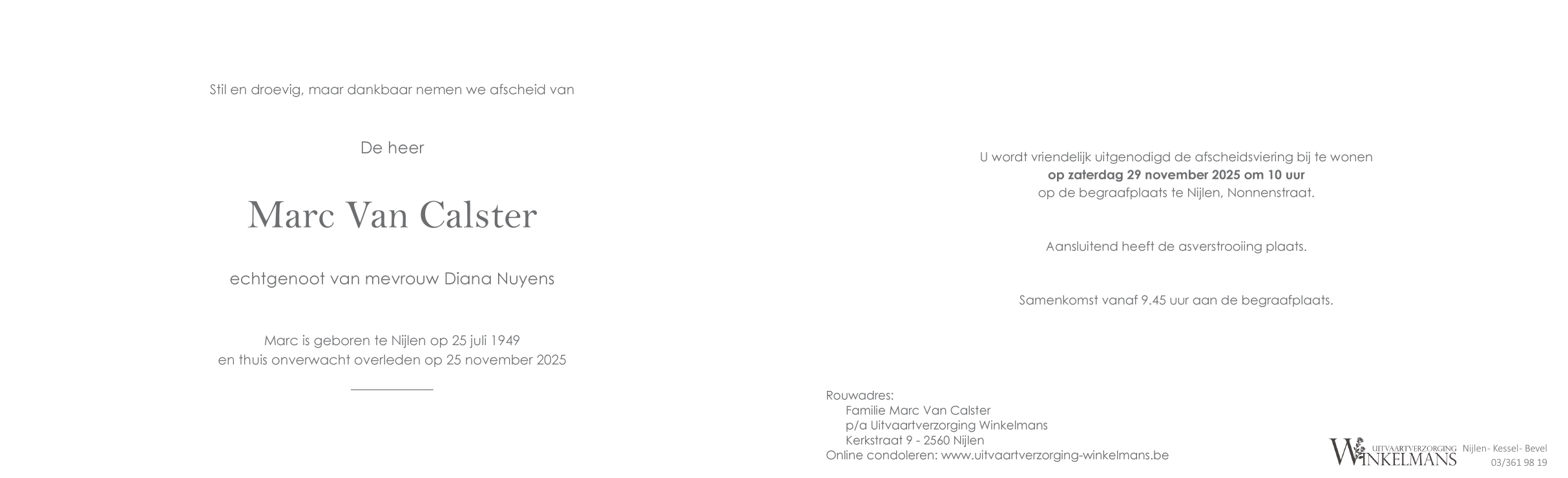 Décédé à Nijlen (2560) le mardi 25 novembre 2025 à l'âge de 76 ans
