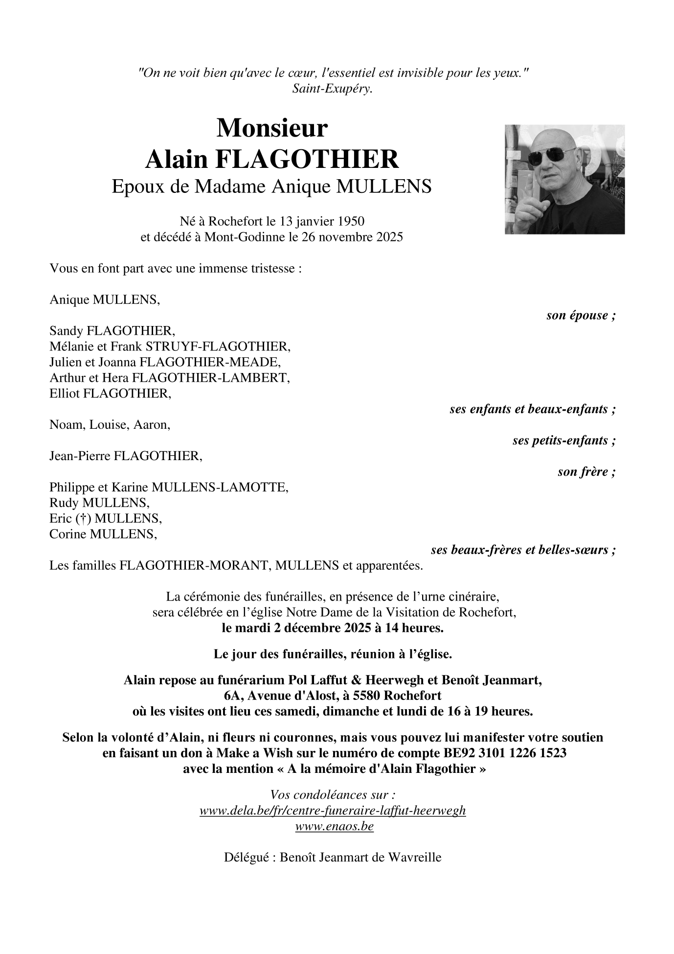 Died in Mont-Godinne (5530) on 25 November 2025 at the age of 75 years