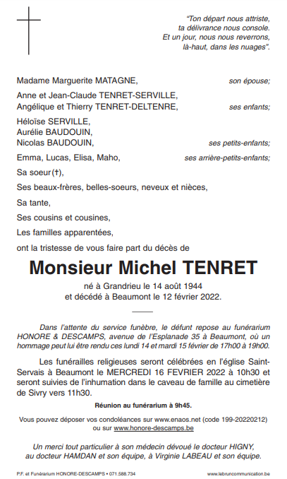 Died in Beaumont (6500) on 12 February 2022 at the age of 77 years