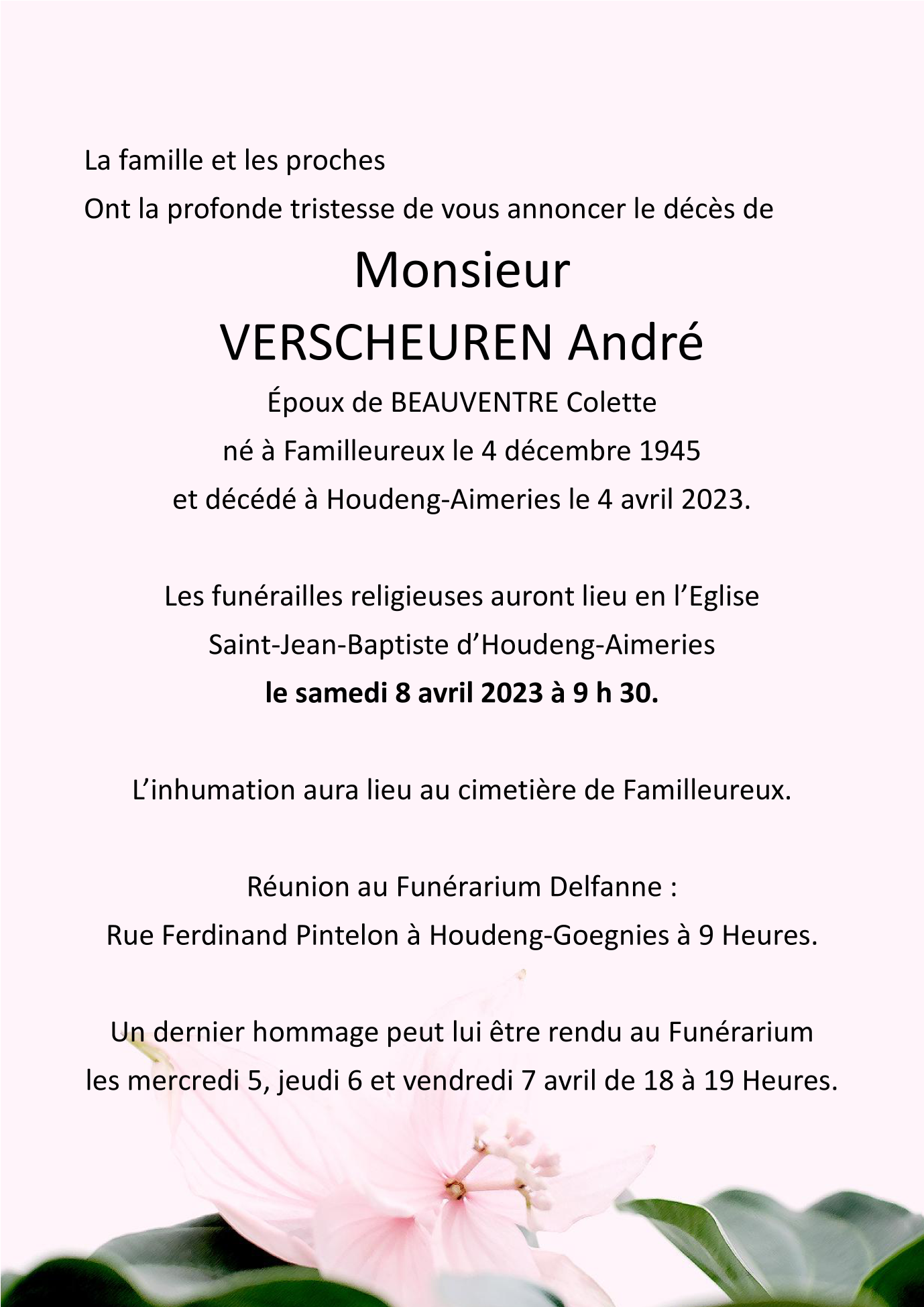 Décédé à Houdeng-Aimeries (7110) le mardi 4 avril 2023 à l'âge de 77 ans