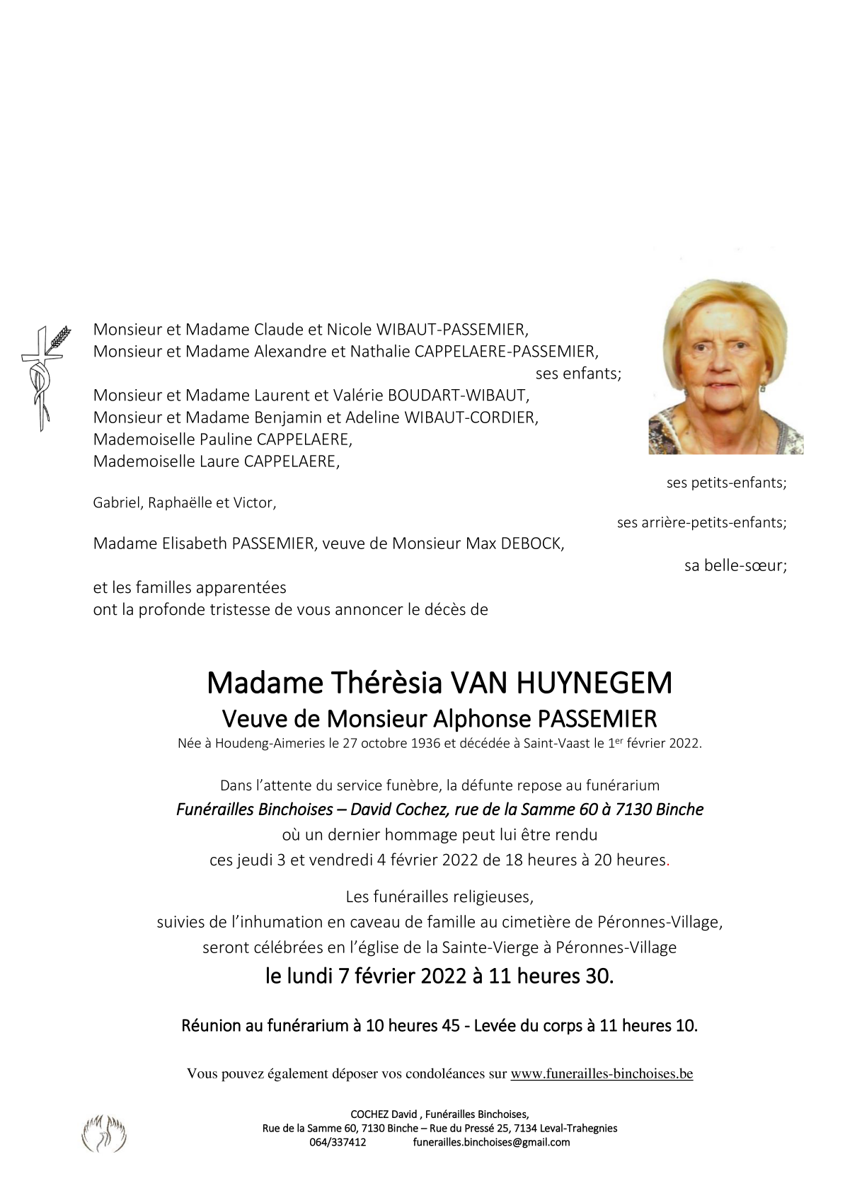 Died in Saint-Vaast (7100) on 01 February 2022 at the age of 85 years