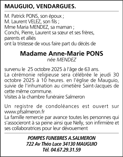 Madame Anne-Marie PONS née MENDEZ