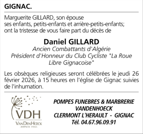 Died in Saint-André-de-Sangonis (34725, France) on 22 February 2026 at the age of 91 years