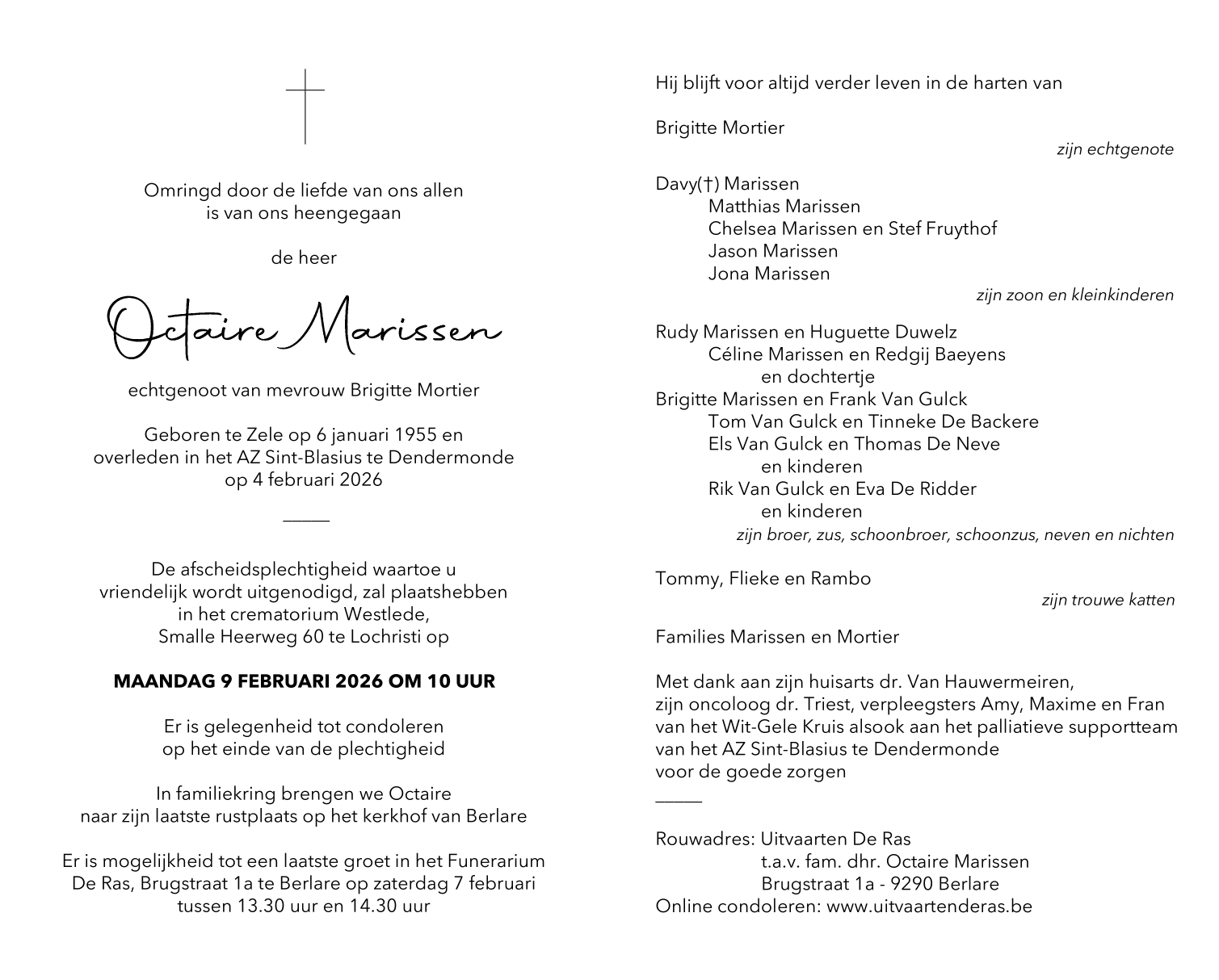 Overleden te Dendermonde (9200) op woensdag 4 februari 2026 op 71-jarige leeftijd