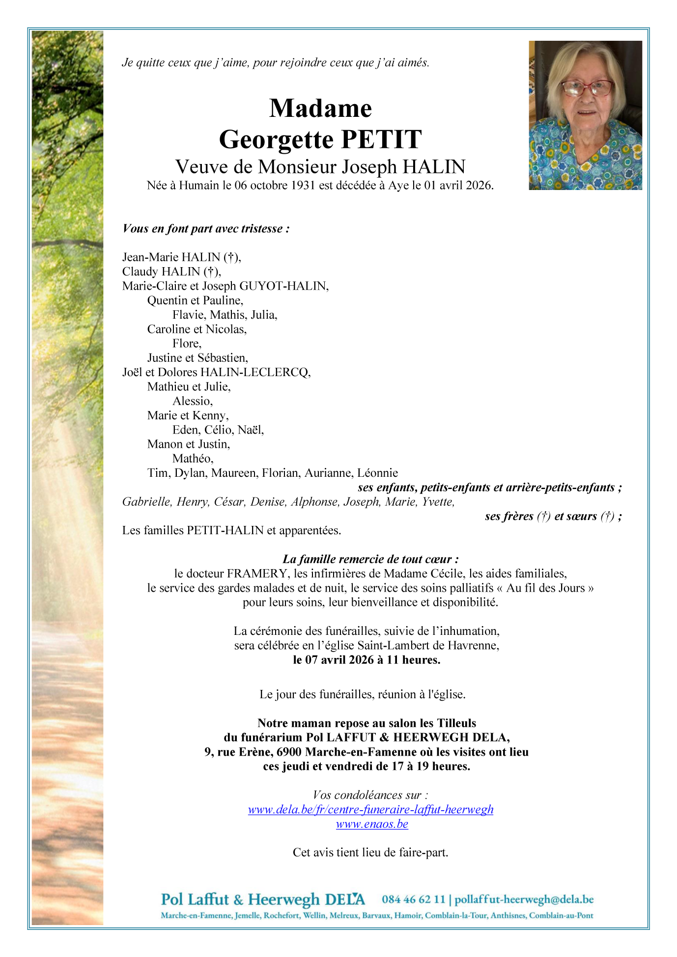 Née à Humain (6900) le mardi 6 octobre 1931
