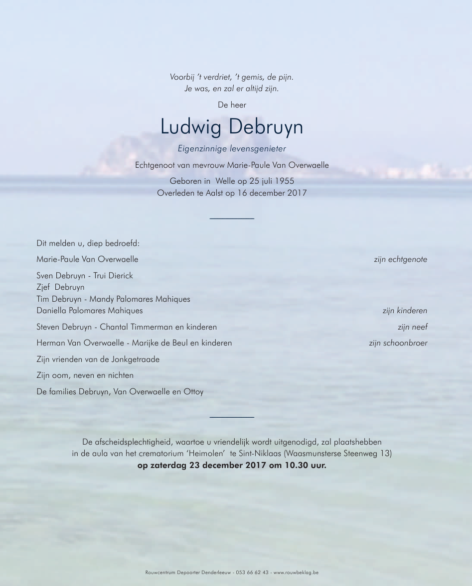 Overleden te Aalst (9300) op zaterdag 16 december 2017 op 62-jarige leeftijd