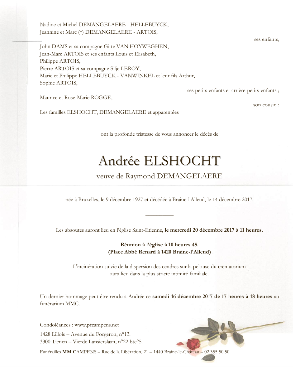 Died in Braine-l'Alleud (1420) on 14 December 2017 at the age of 90 years