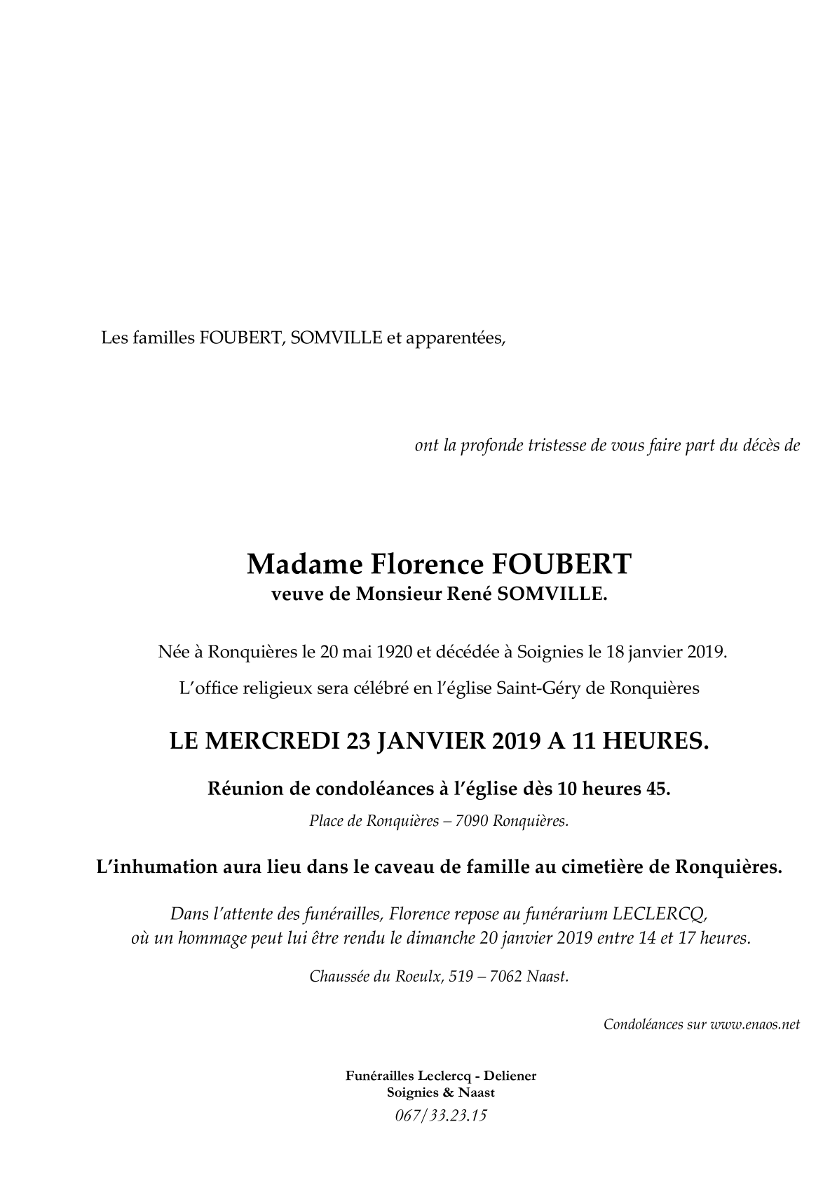 Fallecida en Soignies (7060) el viernes, 18 de enero de 2019 a la edad de 98 años