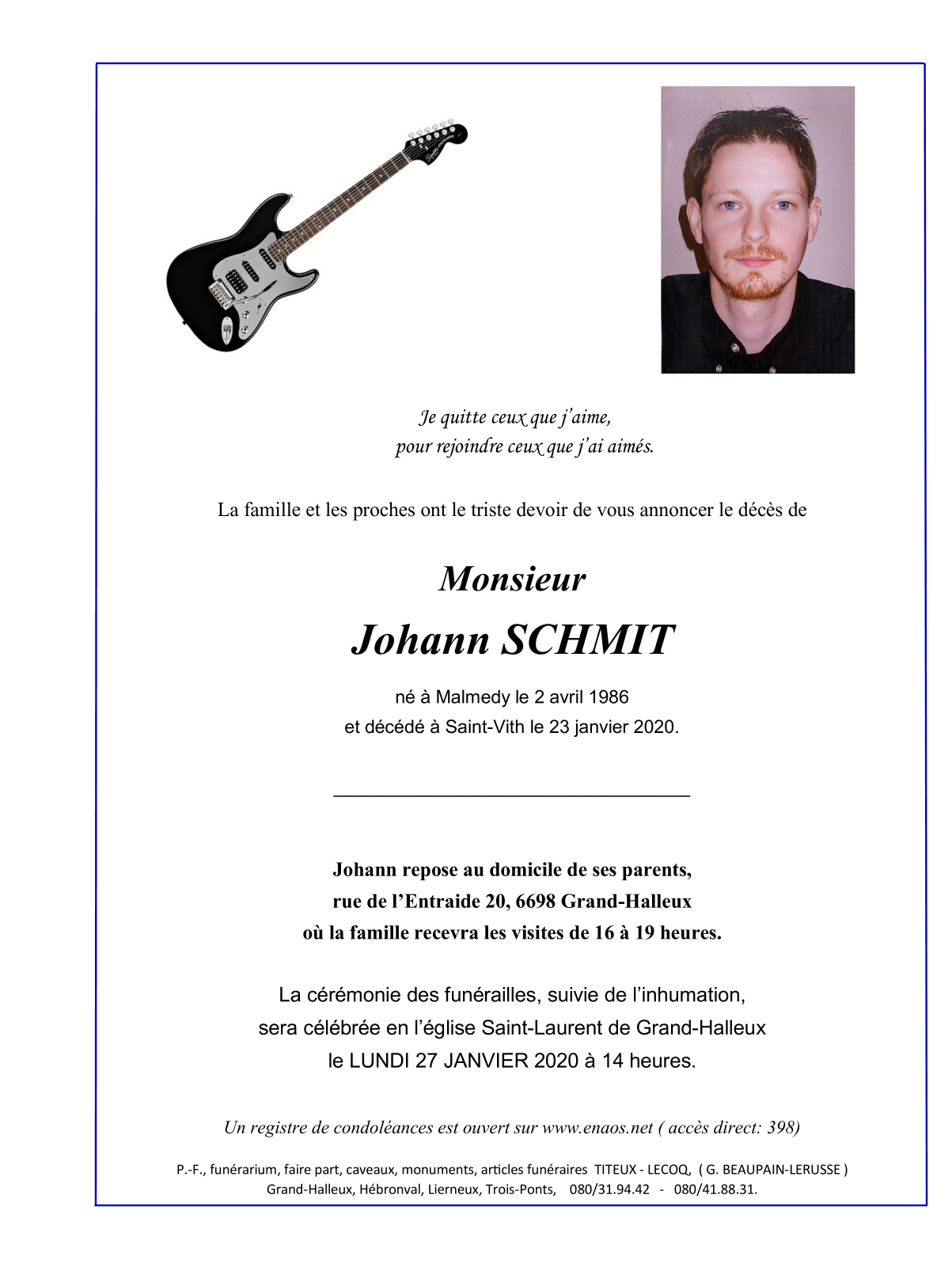 Overleden te Saint-Vith (4780) op donderdag 23 januari 2020 op 33-jarige leeftijd