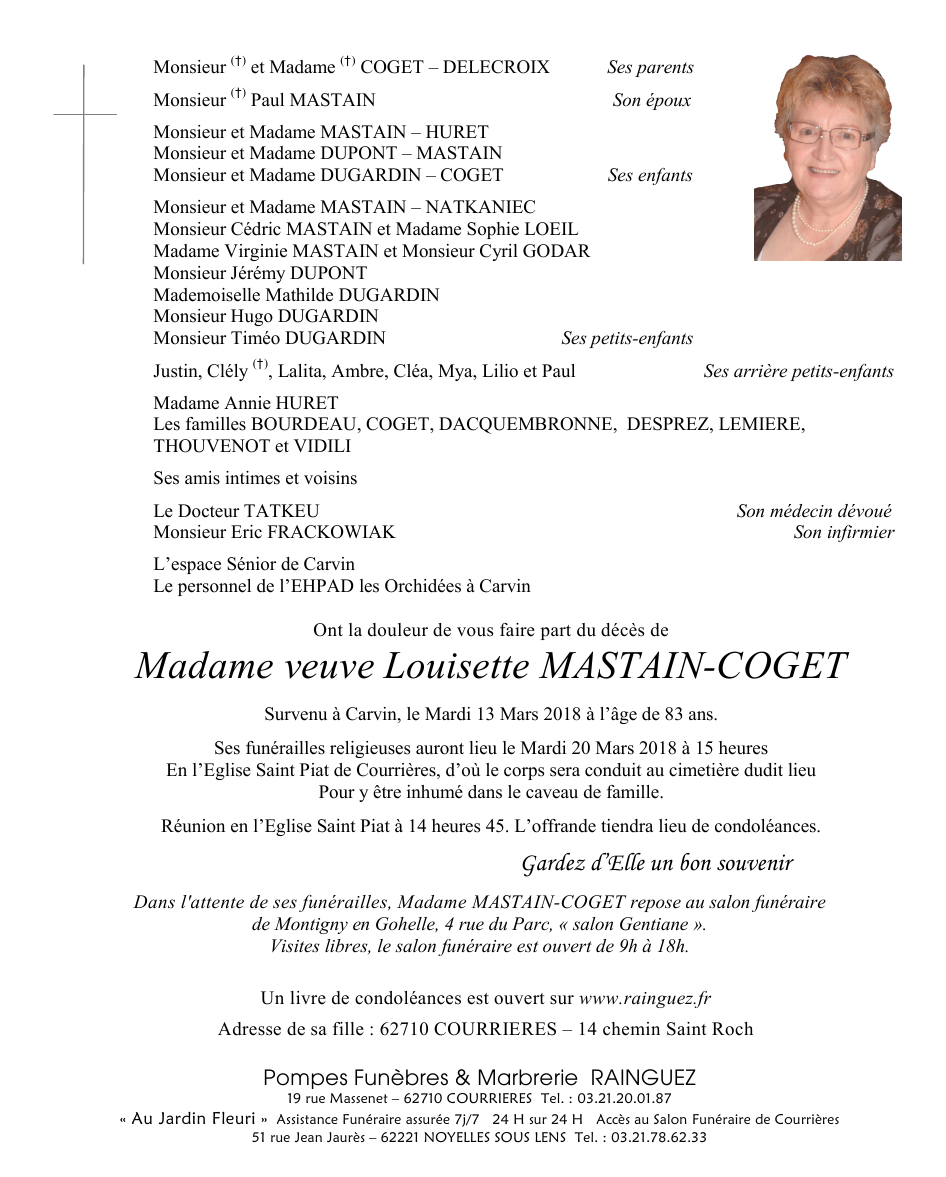 Madame Louisette MASTAIN geboren COGET