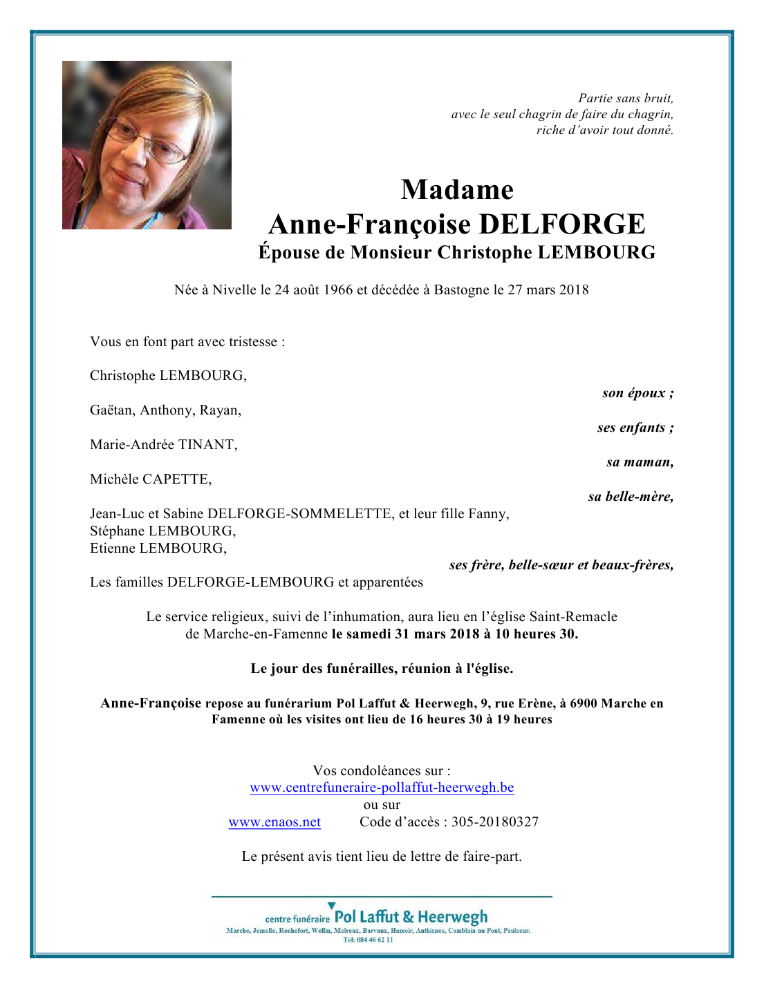 Overleden te Bastogne (6600) op dinsdag 27 maart 2018 op 51-jarige leeftijd