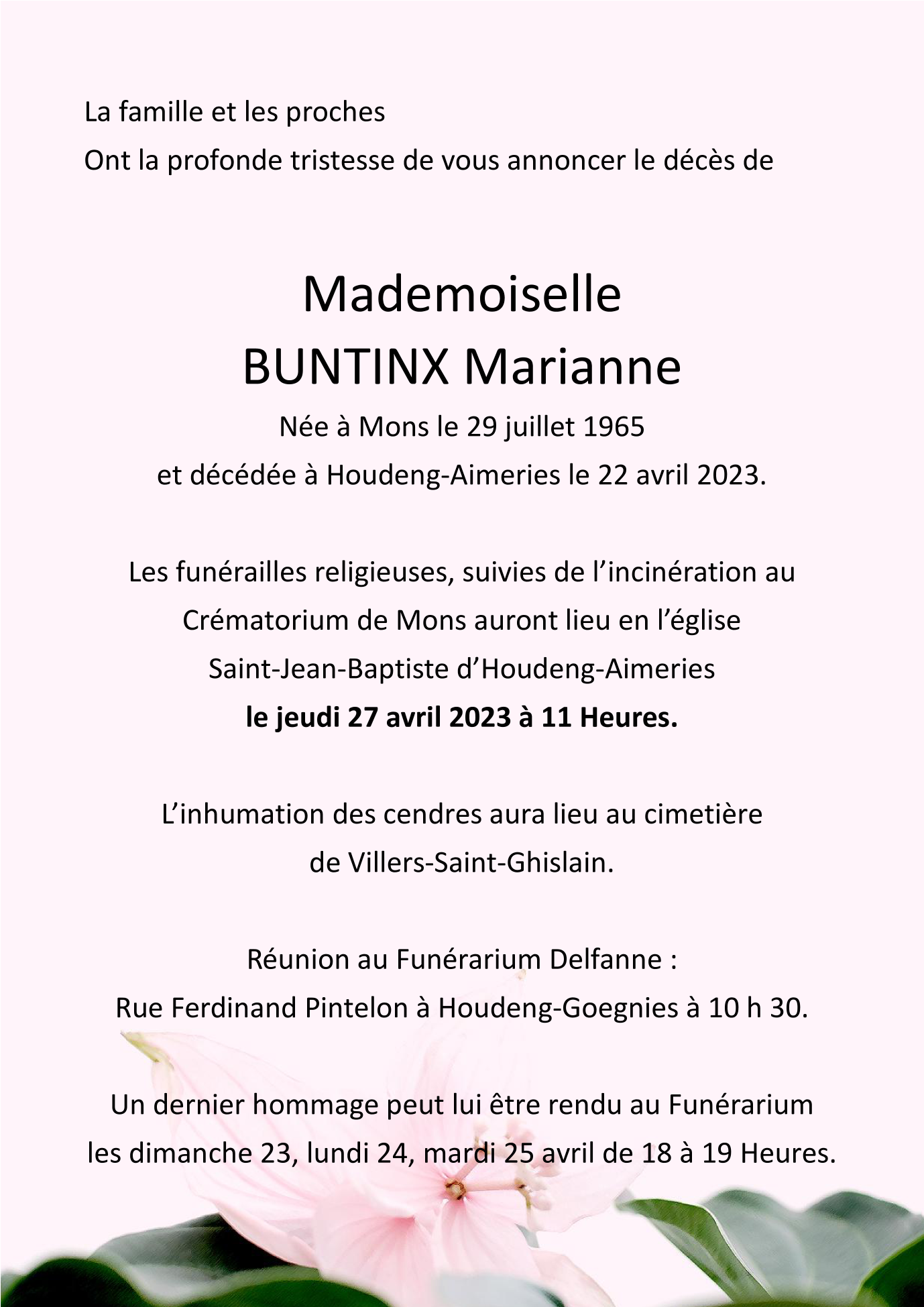 Died in Houdeng-Aimeries (7110) on 22 April 2023 at the age of 57 years