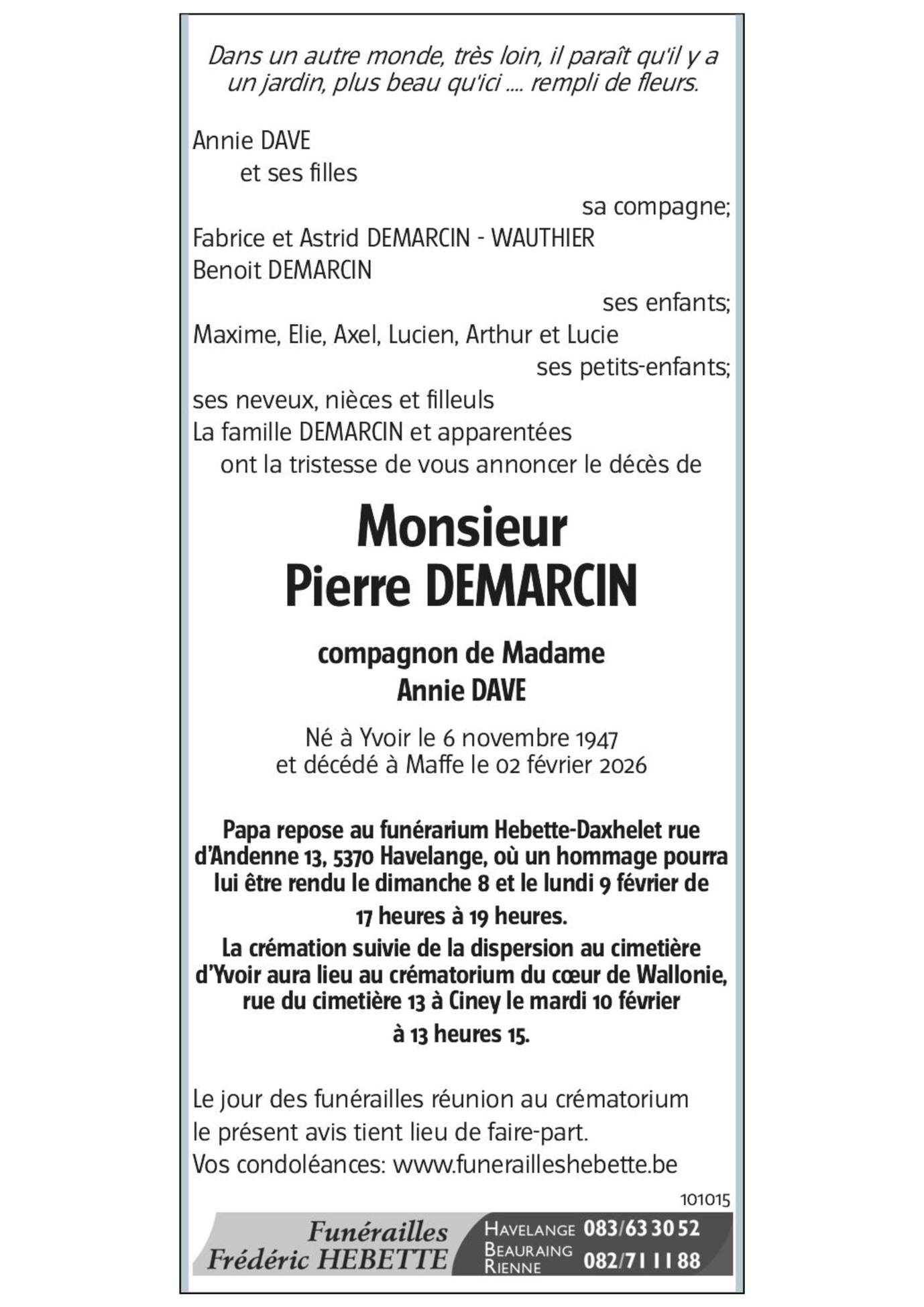 Monsieur Pierre DEMARCIN