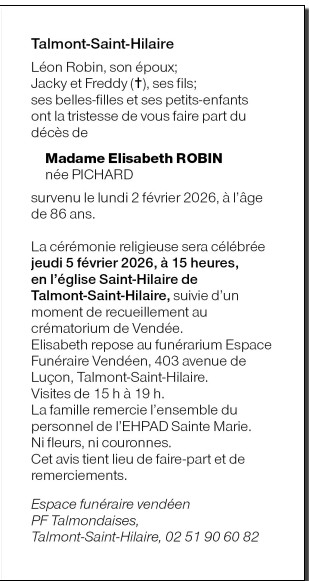Overleden te Talmont-Saint-Hilaire (85440, Frankrijk) op maandag 2 februari 2026 op 86-jarige leeftijd