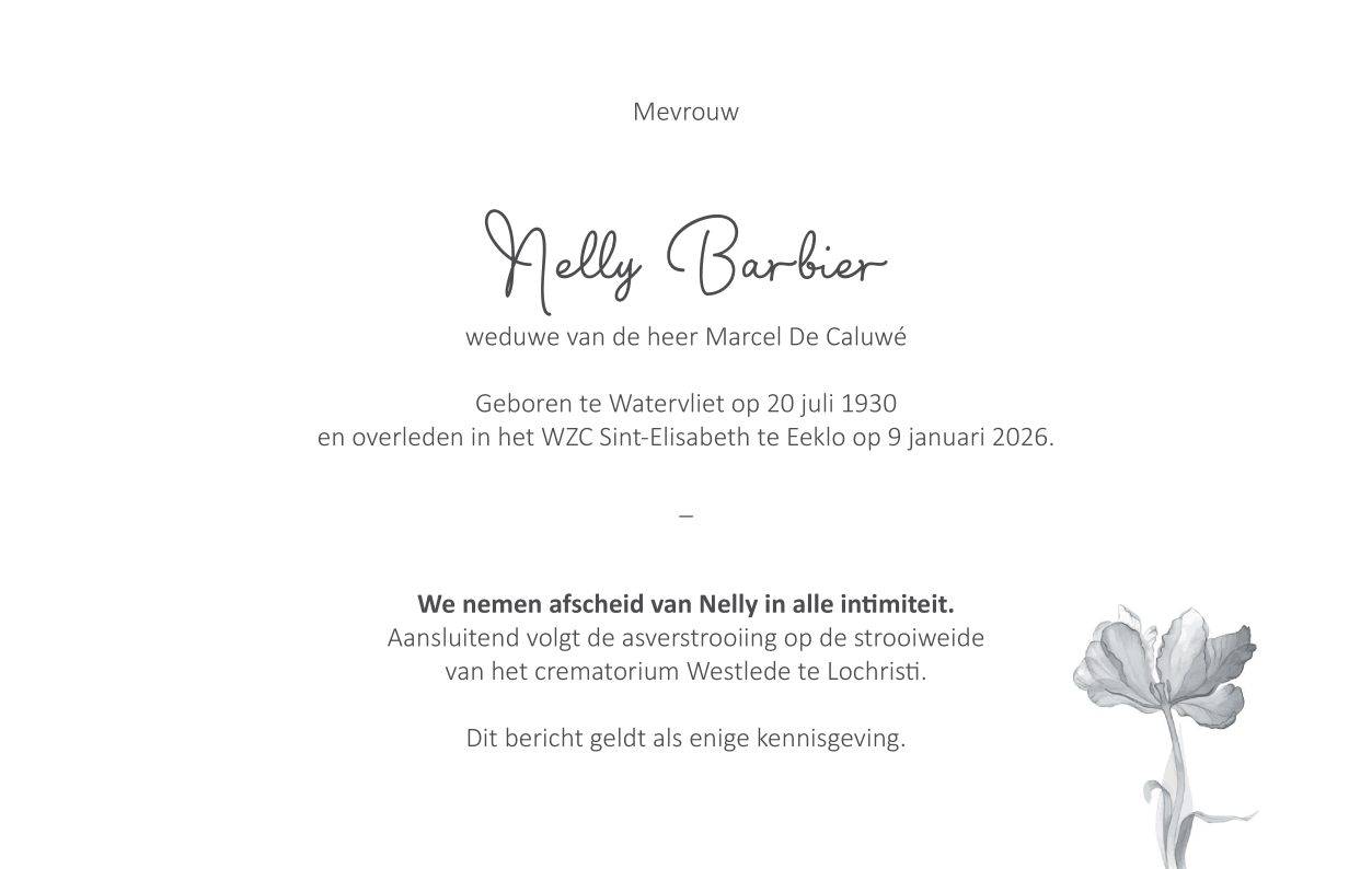 Veuve de De heer Marcel De Caluwé