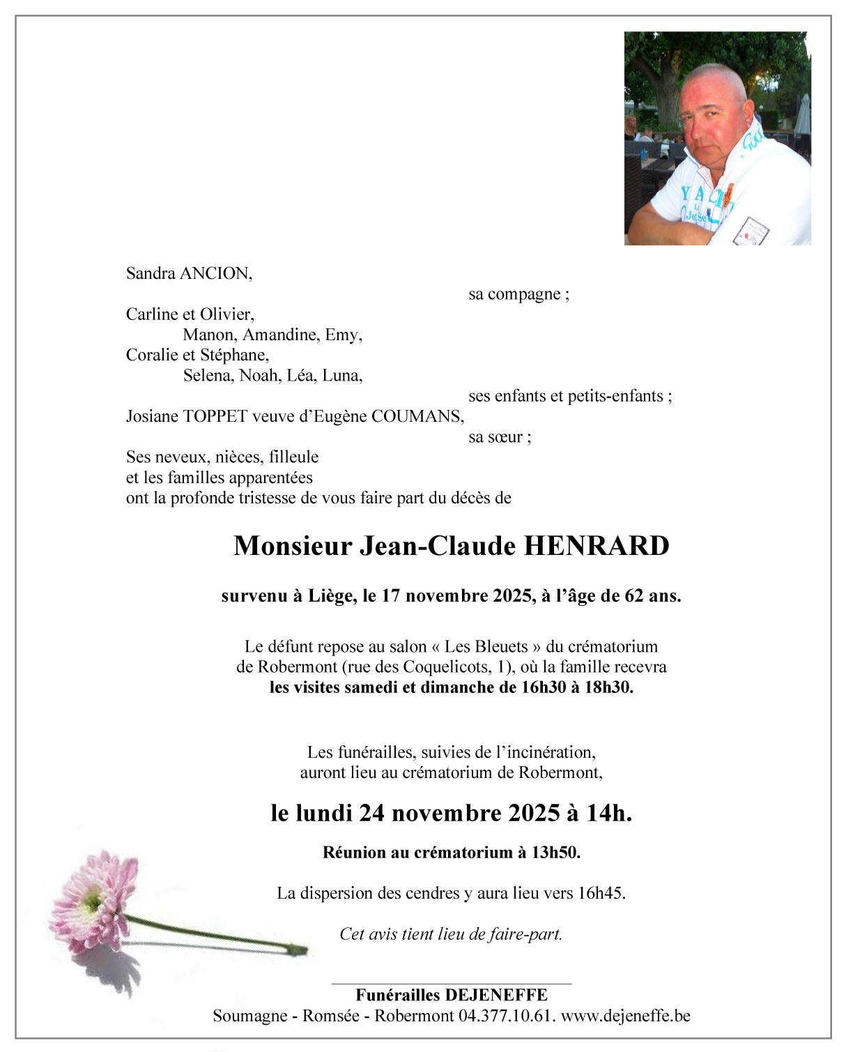 Fallecido en Liège (4000) el lunes, 17 de noviembre de 2025 a la edad de 62 años