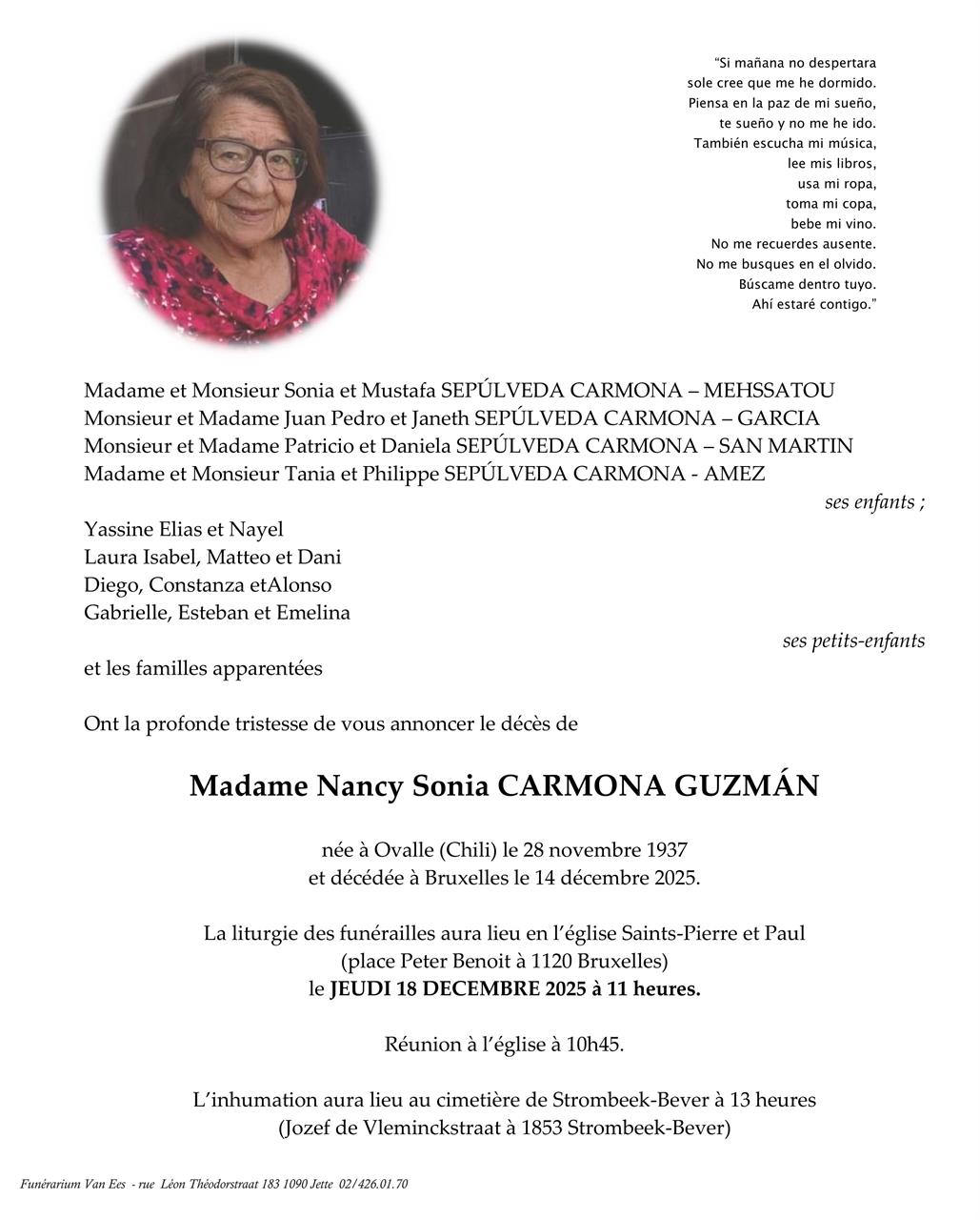 Décédée à Bruxelles (1020) le dimanche 14 décembre 2025 à l'âge de 88 ans