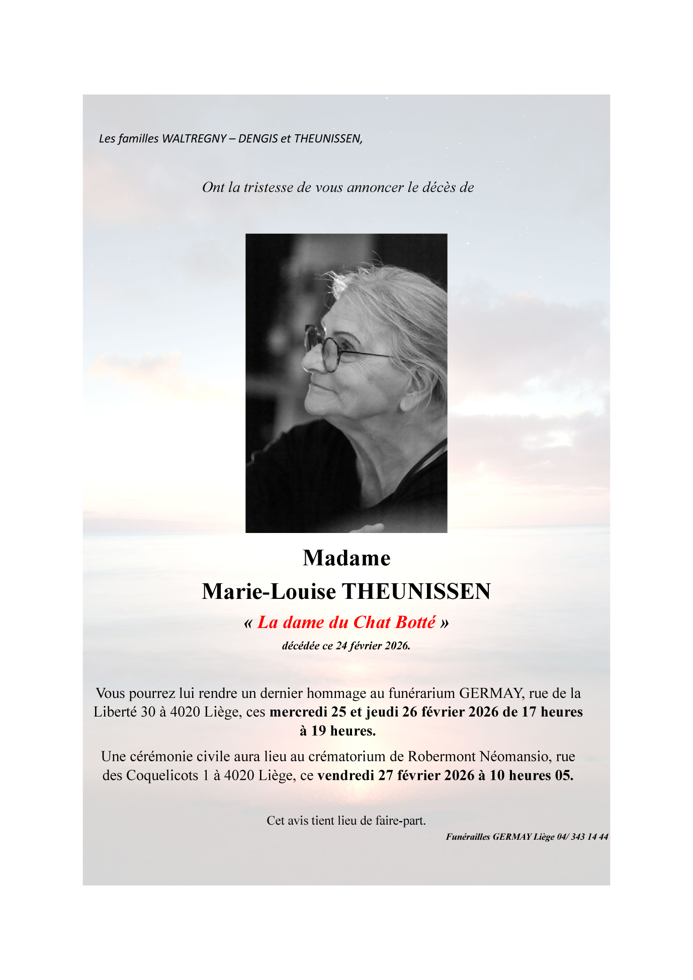 Décédée à Liège (4020) le mardi 24 février 2026 à l'âge de 83 ans