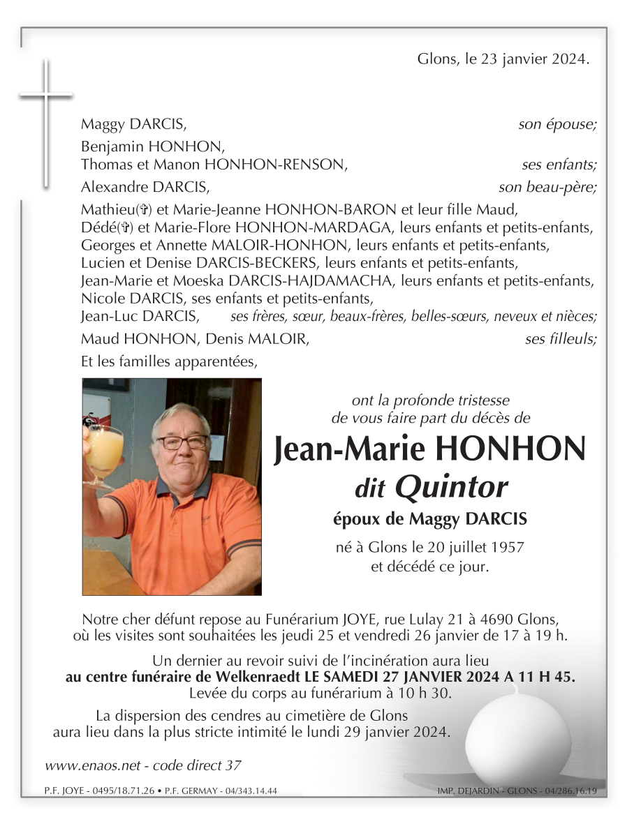Fallecido en Glons (4690) el martes, 23 de enero de 2024 a la edad de 66 años