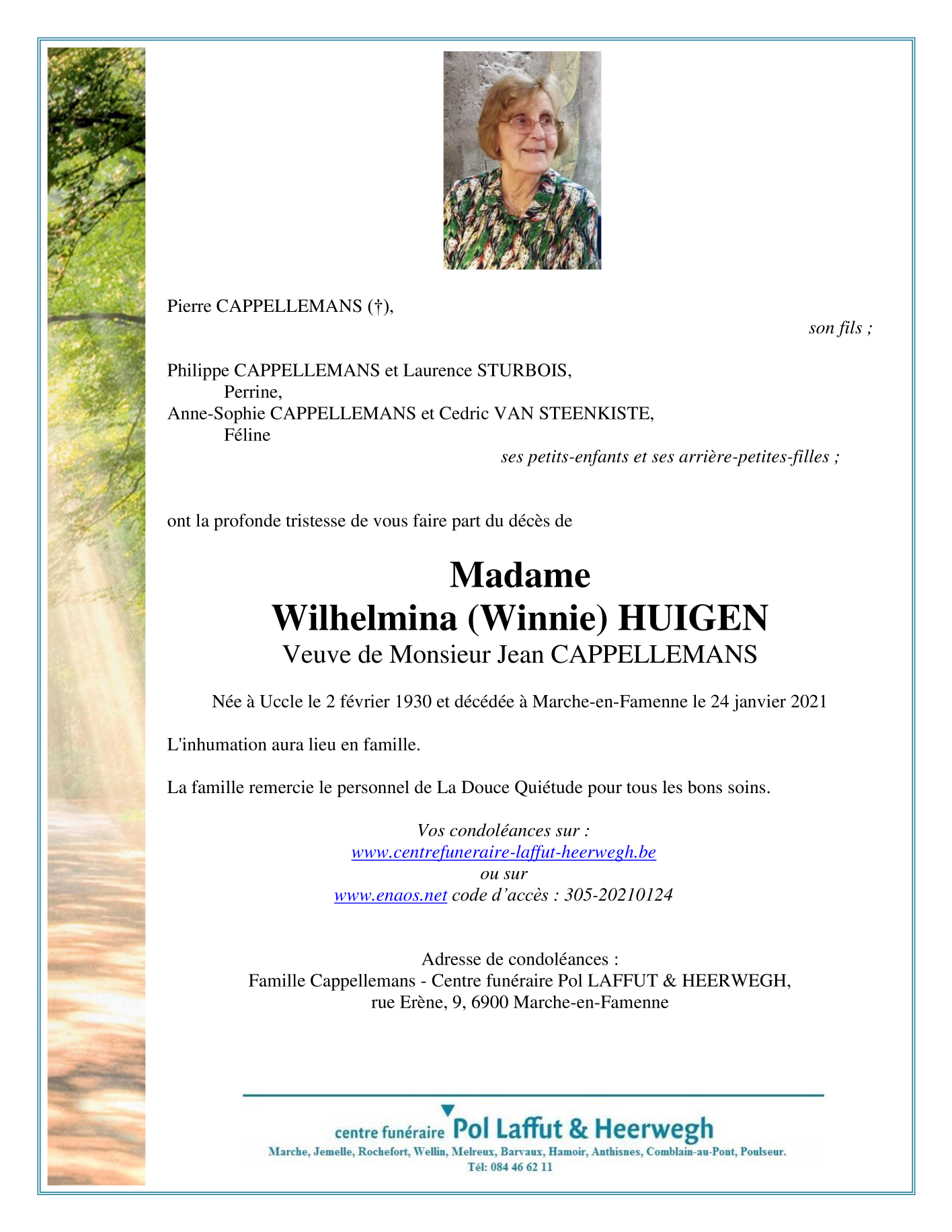 Fallecida en Aye (6900) el domingo, 24 de enero de 2021 a la edad de 90 años