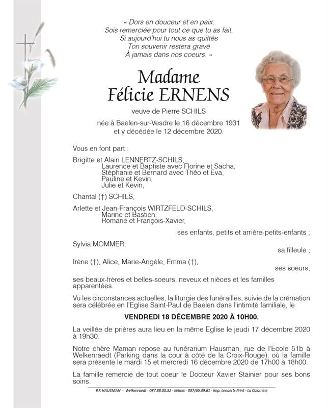 Décédé à Baelen (Lg.) (4837) le samedi 12 décembre 2020 à l'âge de 88 ans