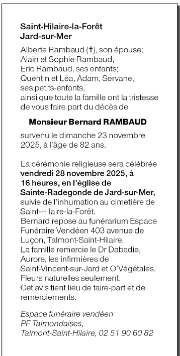 Overleden te Saint-Hilaire-la-Forêt (85440, Frankrijk) op zondag 23 november 2025 op 82-jarige leeftijd