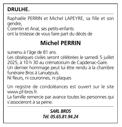 Overleden te Villefranche-de-Rouergue (12200, Frankrijk) op woensdag 2 juli 2025 op 81-jarige leeftijd