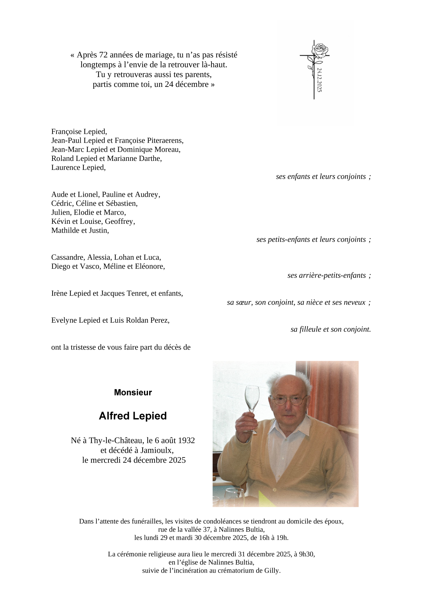 Overleden te Jamioulx (6120) op woensdag 24 december 2025 op 93-jarige leeftijd