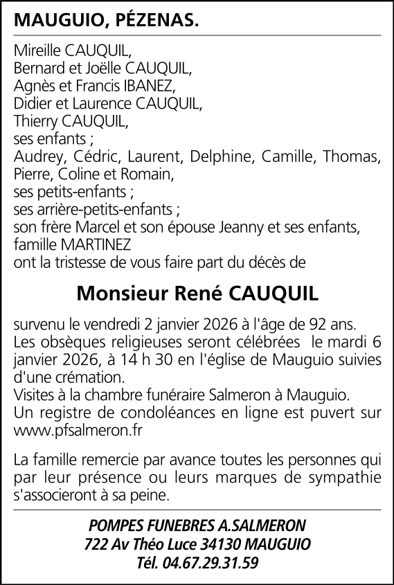 Décédé à Castelnau-le-Lez (34170, France) le vendredi 2 janvier 2026 à l'âge de 92 ans
