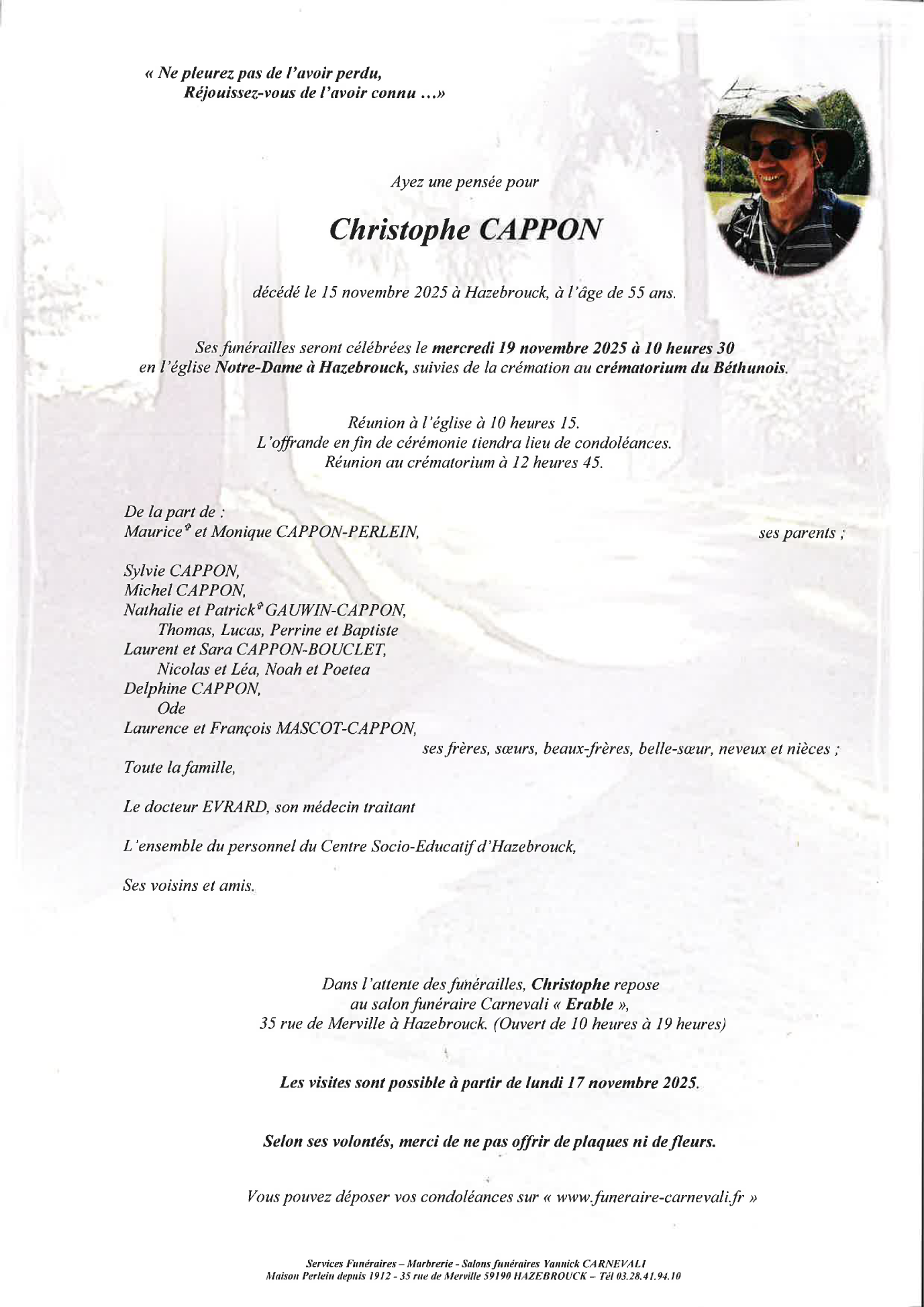 Décédé à Hazebrouck (59190, France) le samedi 15 novembre 2025 à l'âge de 55 ans