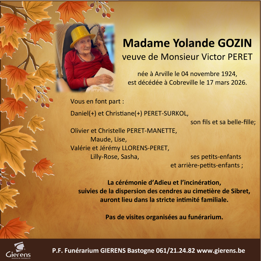 Décédée à Vaux-sur-Sure (6640) le mardi 17 mars 2026 à l'âge de 101 ans