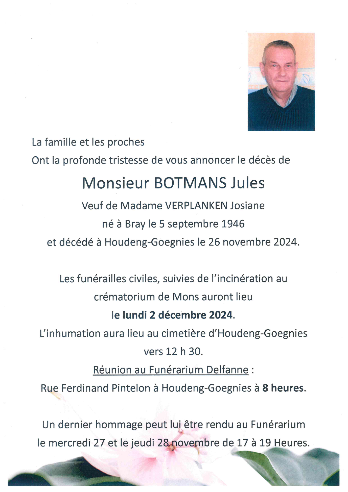 Décédé à Houdeng-Goegnies (7110) le mardi 26 novembre 2024 à l'âge de 78 ans