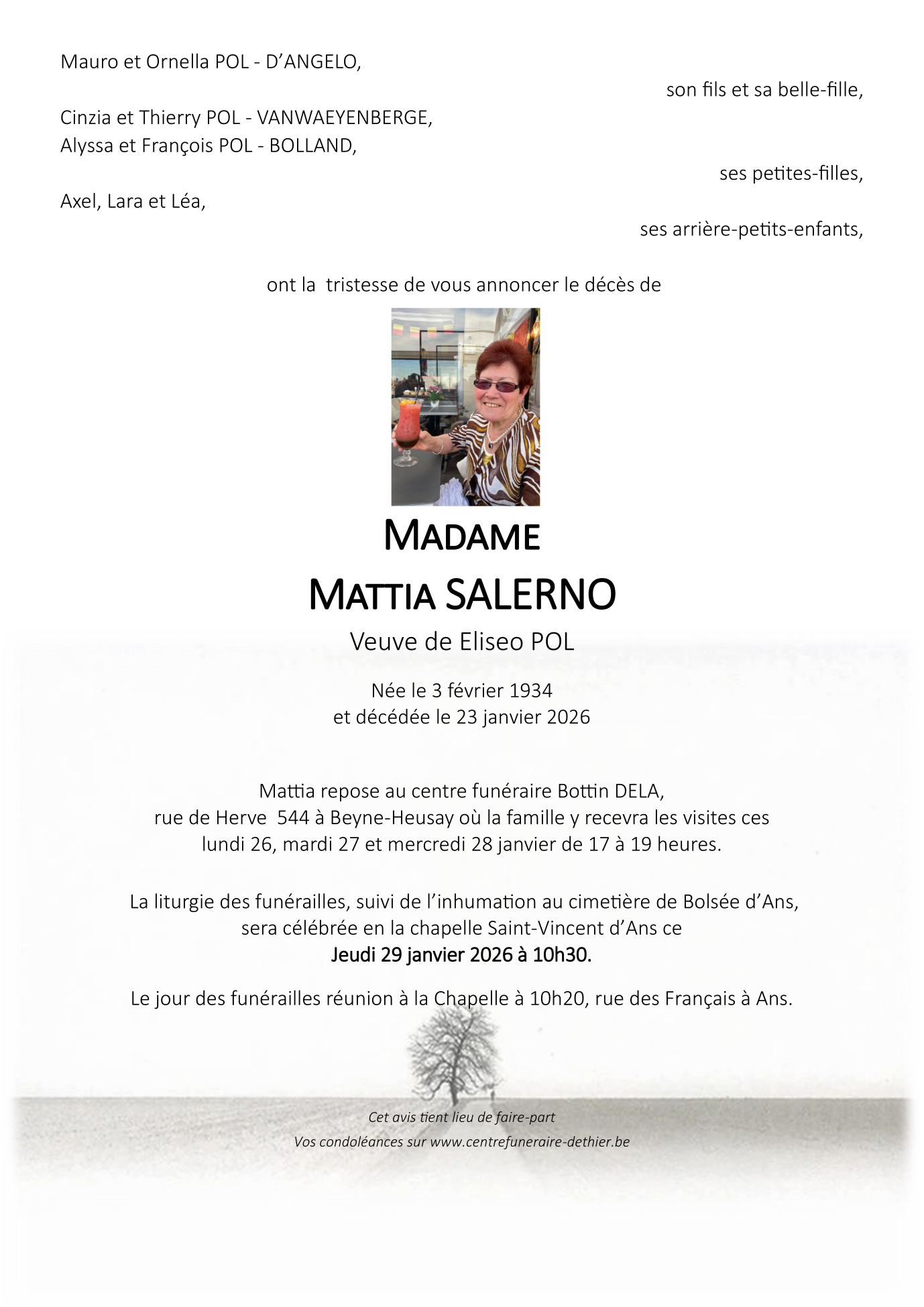 Décédée à Liège (4020) le vendredi 23 janvier 2026 à l'âge de 91 ans
